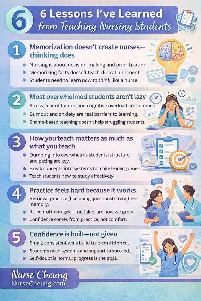 If this resonated with you, share it with a fellow nursing student or educator who needs encouragement. And if you’re looking for structured support, study systems, or mentorship designed for how nursing students actually learn, explore more resources here on NurseCheung.com.