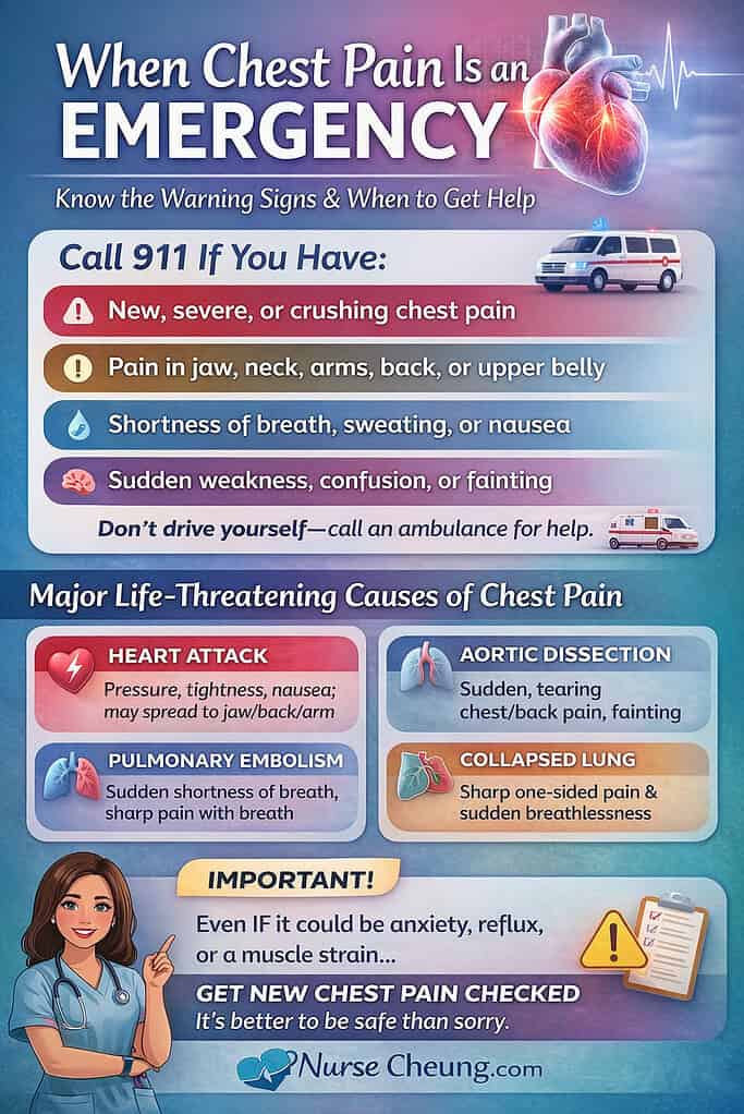 While these conditions are generally less dangerous, the key point is this: they are diagnoses made after serious causes are ruled out. New or unexplained chest pain should not be self-diagnosed, even if it feels familiar.